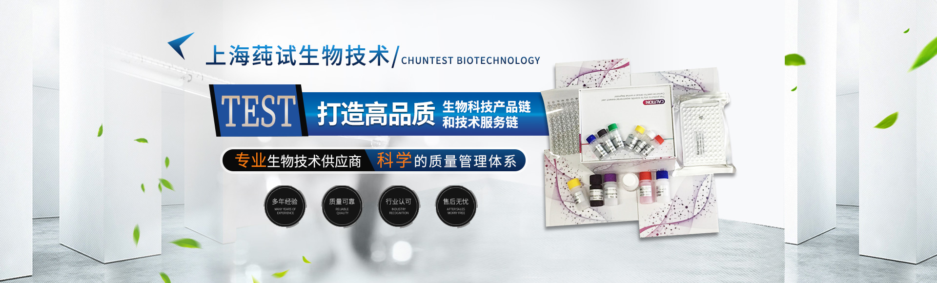 上海莼試生物技術有限公司ShanghaiC-reagentBiotechnologyCo.Ltd.專業服務于生命科學領域,擁有分子生物學、醫學、藥學、化學等方面的科研技術團隊,經營科研生化試劑、分析試劑、實驗耗材,推出技術先進、質量穩定的科研產品。為全國乃至于世界各地科研機構、工業、電子、醫療、科技等領域的客戶,提供系統的產品資源及配套技術服務。推出十幾個種類產品線,部分產品接受定制服務!公司著力立足于生命科學領域,全力打造品質生物科技產品鏈和技術服務鏈!